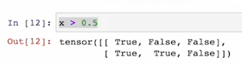 - ex) x > 0.5 ⇒ tensor([[True, False, False], [True, True, False]])